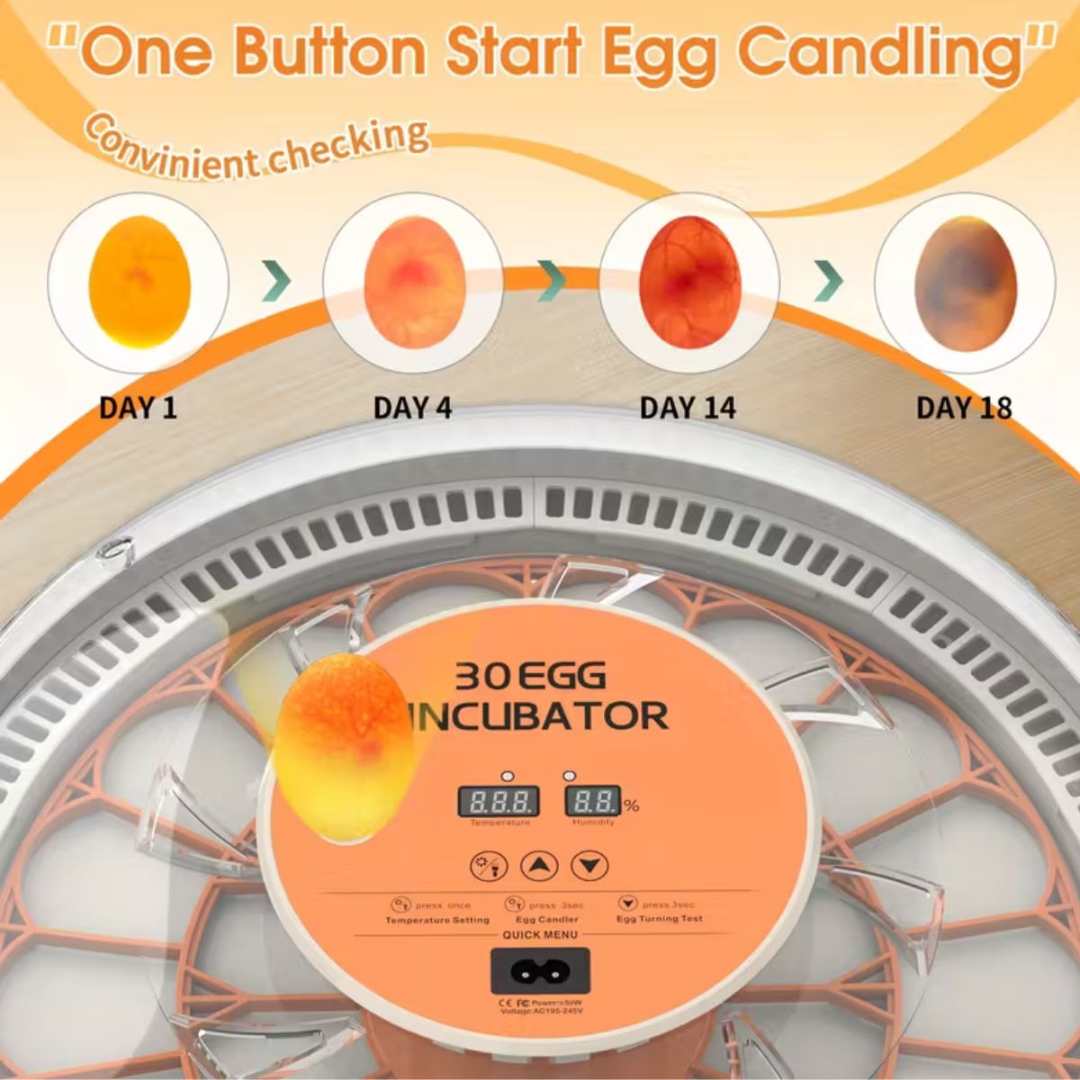 - 30‑egg capacity – suitable for chickens, ducks, quail, and similar poultry